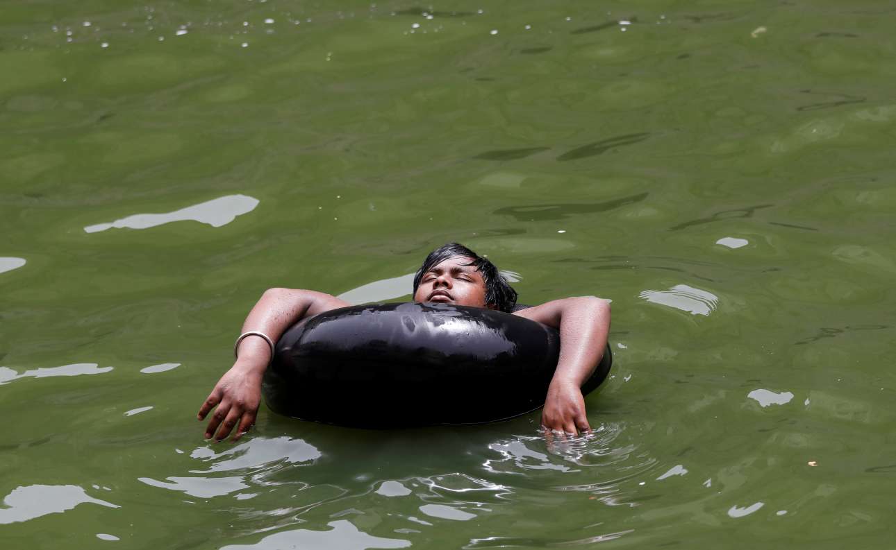 Τρίτη, 12 Ιουνίου, Ινδία. Νεαρός δροσίζεται σε πισίνα, στον ναό Sufi Saint Nizamuddin Auliya, στο Νέο Δελχί