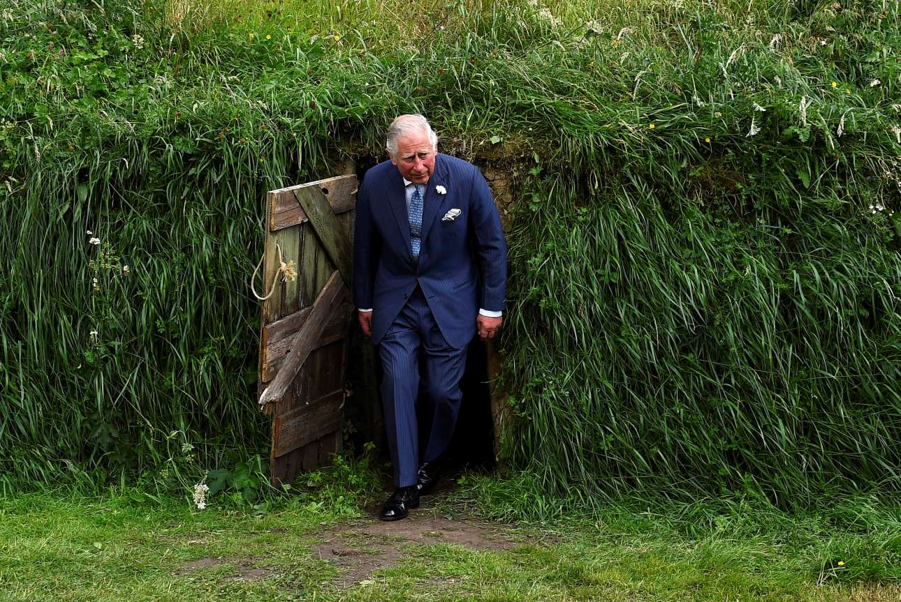Πέμπτη, 14 Ιουνίου, Ιρλανδία. Ο πρίγκιπας Κάρολος της Βρετανίας βγαίνει από μία καλύβα της εποχής του Λιμού της Πατάτας
