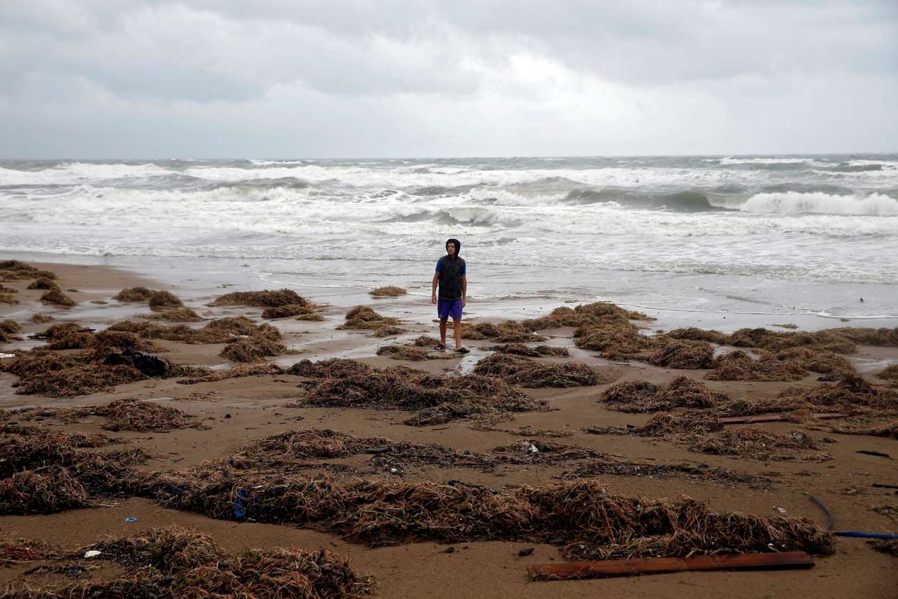 Βαρύς, μελαγχολικός περίπατος στην ακτή της Αμαλιάδας ύστερα από το πέρασμα του κυκλώνα: «Φεύγ’ η θάλασσα και πίσω της μ’ αφήνει αφρούς και λίγα φρύγανα για μόνη ελεημοσύνη» όπως είπε κάποτε και ο Βαλαωρίτης και για διαφορετικούς λόγους