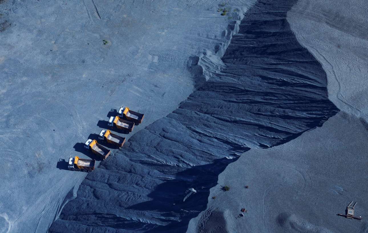 Αυτή η αεροφωτογραφία δείχνει φορτηγά που περιμένουν να φορτώσουν χρώμιο σε ορυχεία κοντά στο Γιοχάνεσμπουργκ – το ορυκτό χρώμιο είναι πολύτιμο στοιχείο για τη μεταλλουργία, ιδίως στις ανοξείδωτες κατασκευές, αλλά και για την οδοντοτεχνία