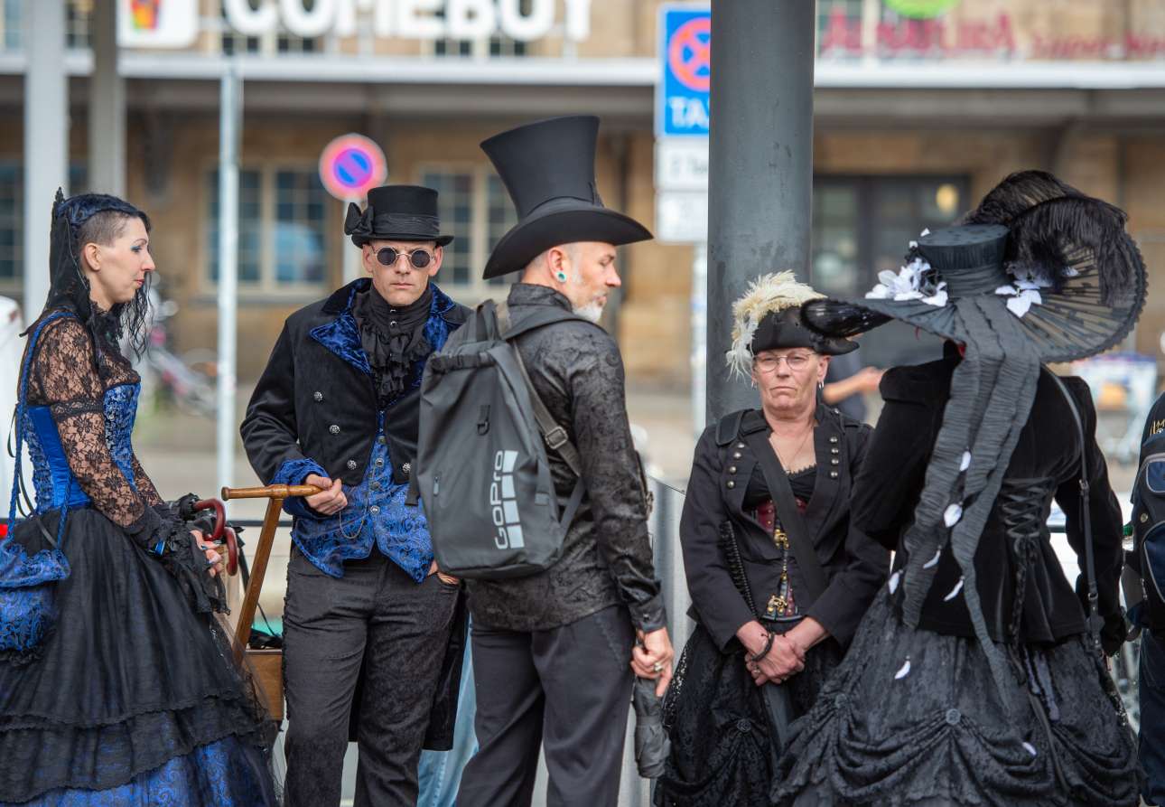 Πέντε επιβάτες τραμ στη Λειψία, δείγμα από τους 20.000 «γκόθικ» που συνέρρευσαν εκεί για φεστιβάλ