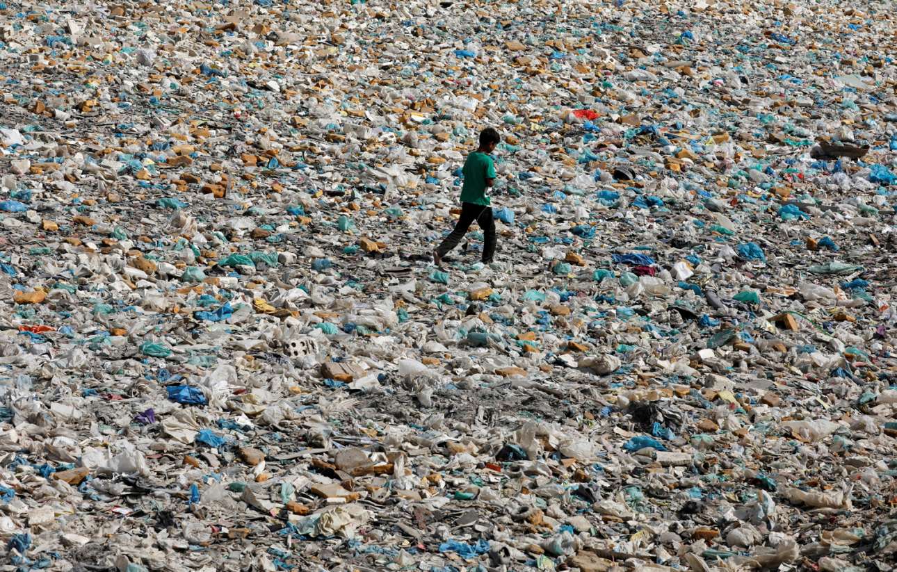 Αθλιότητα στο Πακιστάν: ένα αγόρι βαδίζει πάνω σε παχύ στρώμα από σκουπίδια που καλύπτει… Τι νομίζετε; Εναν αγωγό αποχέτευσης, όπως μας πληροφορεί η λεζάντα του ειδησεογραφικού παρακτορείου