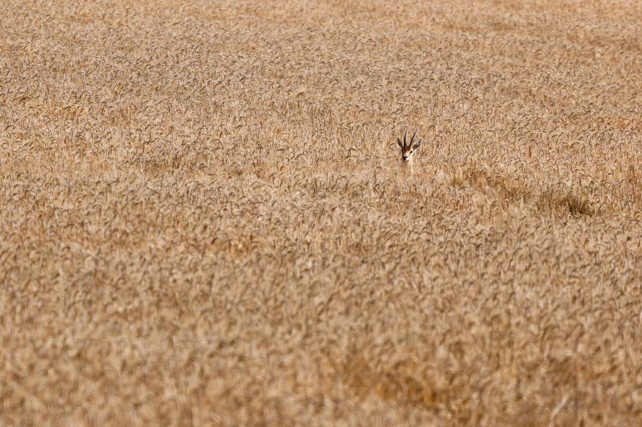 Ανύποπτο για όσα συμβαίνουν τριγύρω του, το κεφάλι της γαζέλας ξεπρόβαλε μέσα από τα στάχυα για να κοιτάξει τον επιθετικό φακό – καρέ σχολιαστικού χαρακτήρα για τους αμάχους της Παλαιστίνης, «από τα σύνορα Ισραήλ-Γάζας» όπως έγραψε το πρακτορείο