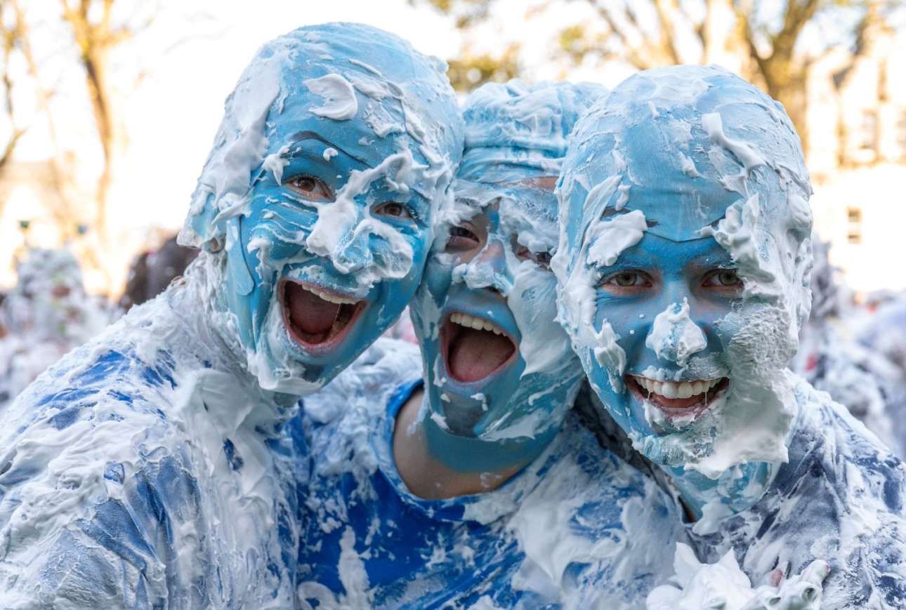 Να και τρία από τα πολλά χαρούμενα κολεγιόπαιδα της Σκωτίας που έπαιξαν με τους αφρούς τηρώντας ένα τοπικό σπουδαστικό έθιμο