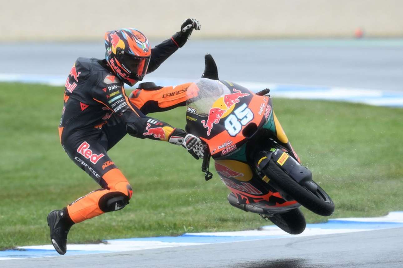 Οι εναέριοι στροβιλισμοί της μηχανής και του αναβάτη απαθανατίστηκαν από τον ετοιμοπόλεμο φακό σε αγώνα μοτοσικλετών στην Αυστραλία