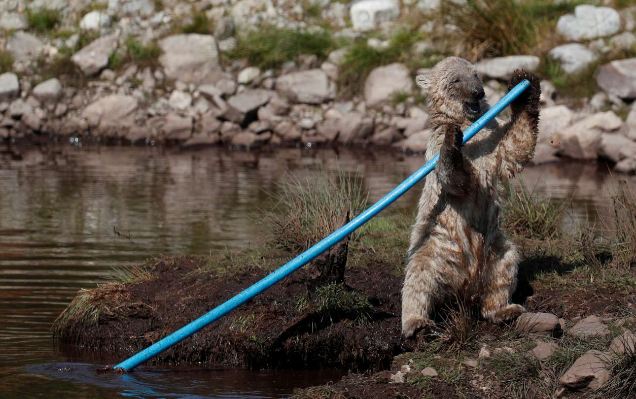 Τετάρτη, 25 Ιουλίου, Σκωτία. Ο Χάμις, η πρώτη πολική αρκούδα που γεννήθηκε στην Βρετανία εδώ και 25 χρόνια διασκεδάζει στο Πάρκο Αγριας Ζωής Highland
