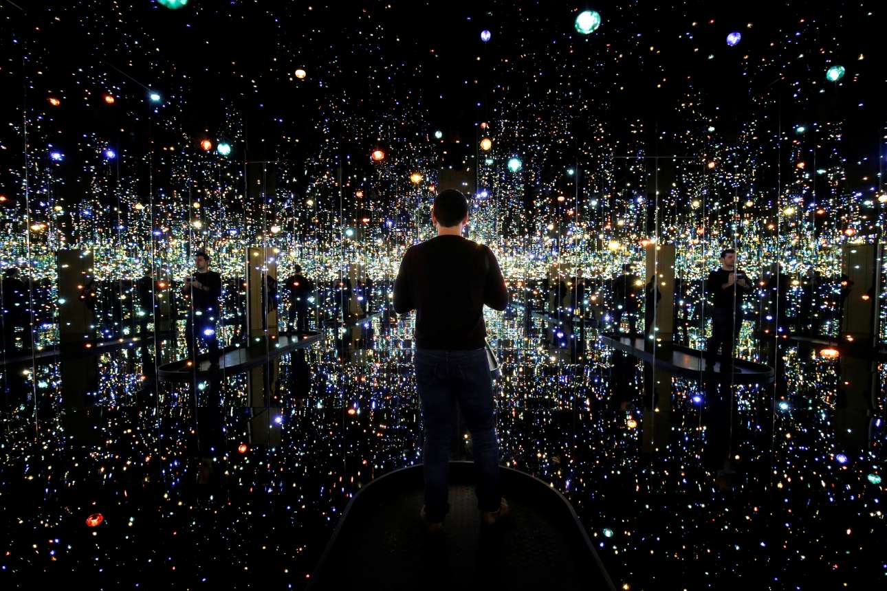 25 Απρ. Βλέπεις ό, τι νομίζεις. Την αντανάκλασή σου, το Διάστημα, μία πόλη με ουρανοξύστες, χαμένες ψυχές, ένα όνειρο. Αυτό είναι το «Δωμάτιο που καθρεφτίζει το άπειρο – Ψυχές εκατομμυρίων ετών φωτός», της γιαπωνέζας Γαγόι Κουσάμα στο Μουσείο Χίρσορν στην Ουάσιγκτον