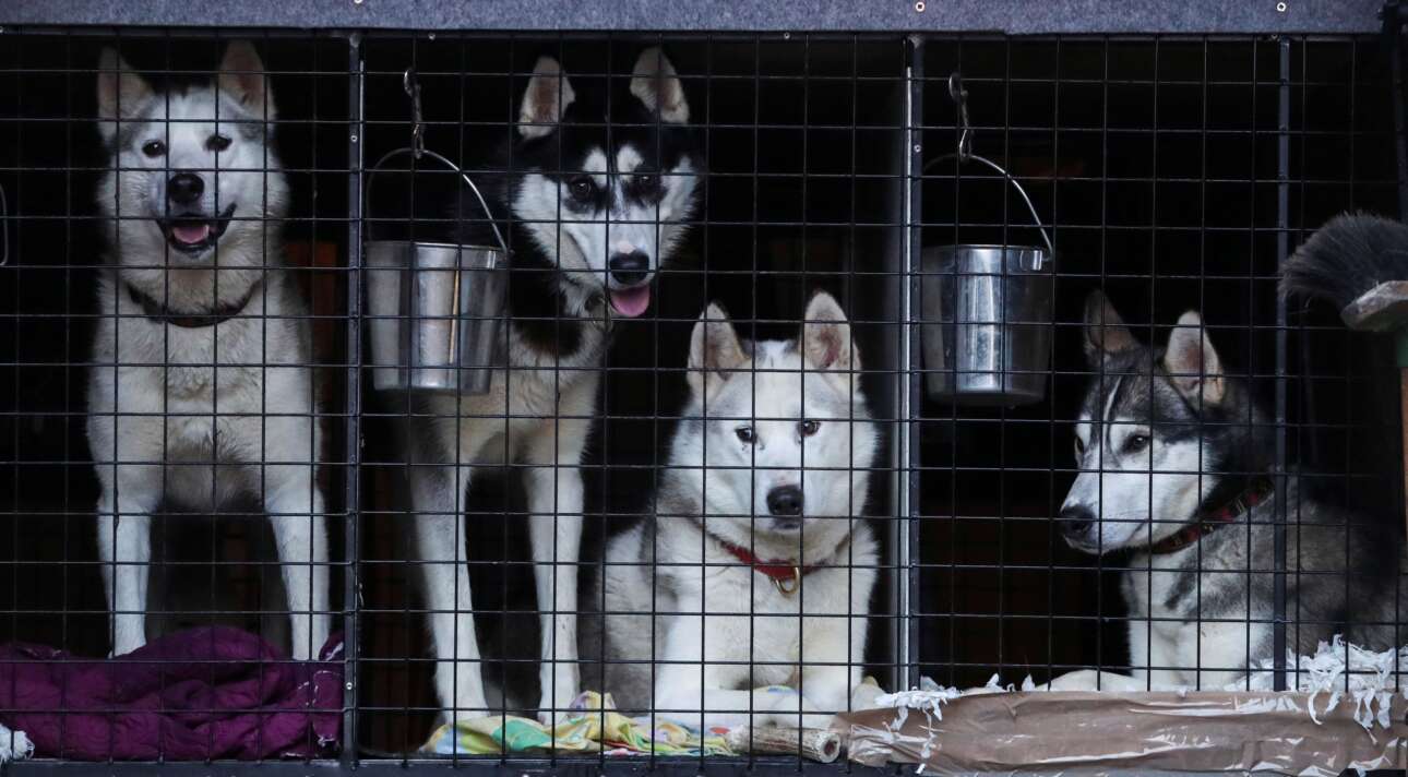 Σκυλιά ράτσας χάσκι σε καρότσα φορτηγού λίγο πριν από την προπόνησή τους – αυτά τα όμορφα ζώα συμμετείχαν το Σαββατοκύριακο σε έναν αγώνα ελκήθρου που διεξάγεται κάθε χρόνο στη Σκωτία και απαιτεί ελκτική δύναμη, δεξιοτεχνία και, βέβαια, ταχύτητα