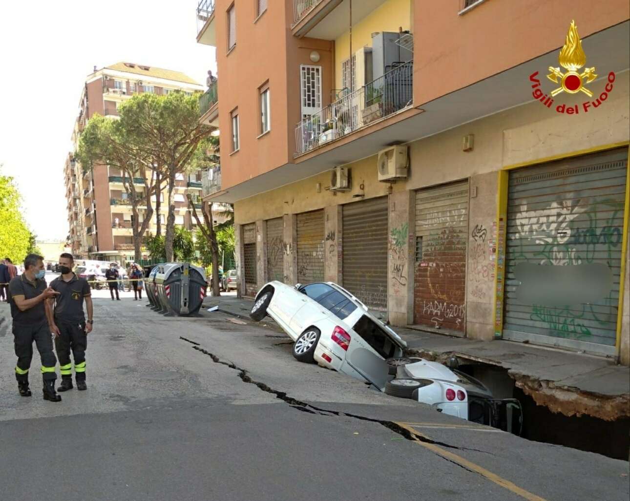 Ρώμη. Μεγάλο πάντα το «τράφικο», αλλά η υποχώρηση του οδοστρώματος δεν είναι και η καλύτερη λύση για πάρκινγκ. Φωτογραφία της Πυροσβεστικής