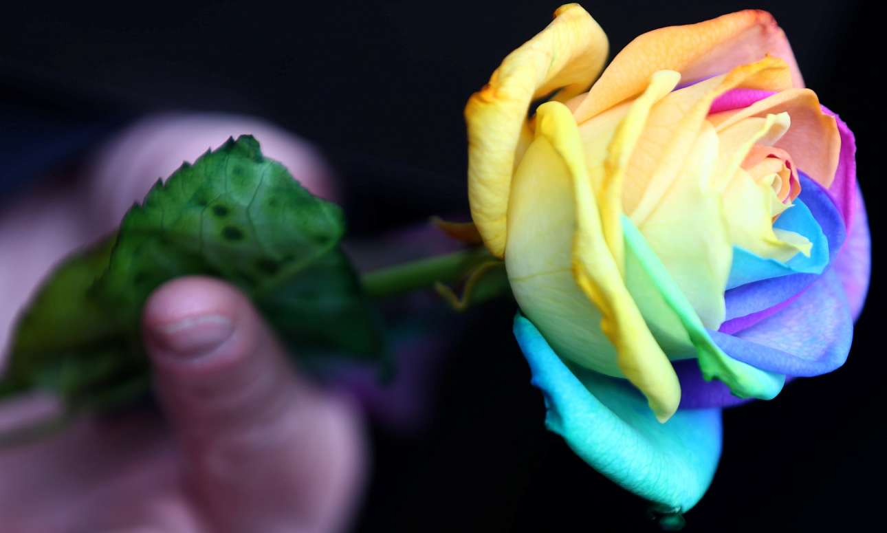 2 Ιουν. Ενα πολύχρωμο λουλούδι κρατά διαδηλώτρια κατά τη διάρκεια πορείας που πραγματοποιήθηκε έξω από τη ρωσική πρεσβεία, στο Λονδίνο, για τα δικαιώματα της ΛΟΑΤΚΙ κοινότητας στην Τσετσενία