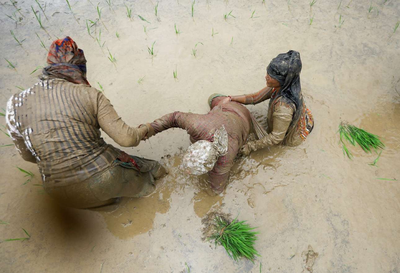 Nεπαλέζες αγρότισσες φύτεψαν νέα φυτά στον ορυζώνα και, κατά το φωτοπρακτορείο, το διασκέδασαν κιόλας