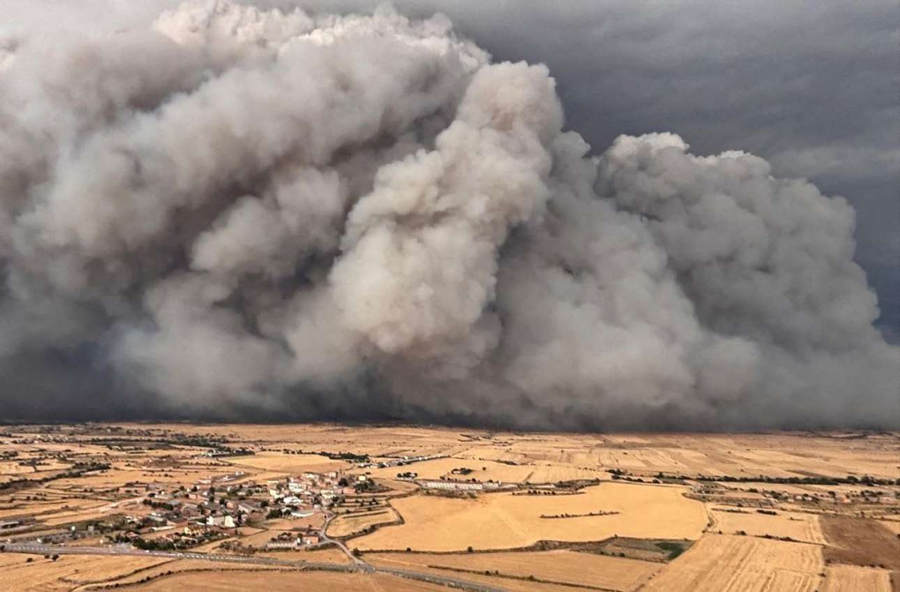 Εντυπωσιακό καρέ καταστροφής από το θρίλερ της ζωής, με τους πυκνούς καπνούς πυρκαγιάς να πλησιάζει απειλητικά ισπανικό χωριό