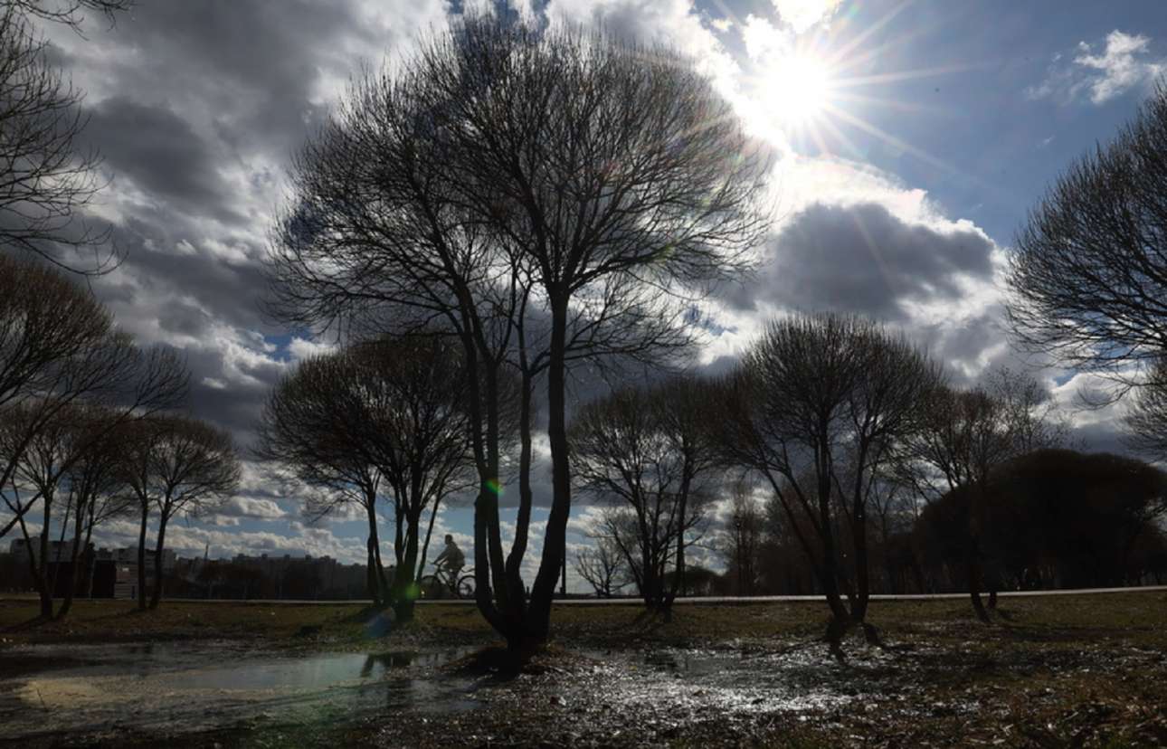 Ο ήλιος μάλλον κέρδισε τη μάχη με τα βαριά σύννεφα, όμως στον κάμπο είδε δέντρα με γυμνά κλαδιά, σημάδι ότι η μοσχοβίτικη άνοιξη θα αργήσει λίγο ακόμη