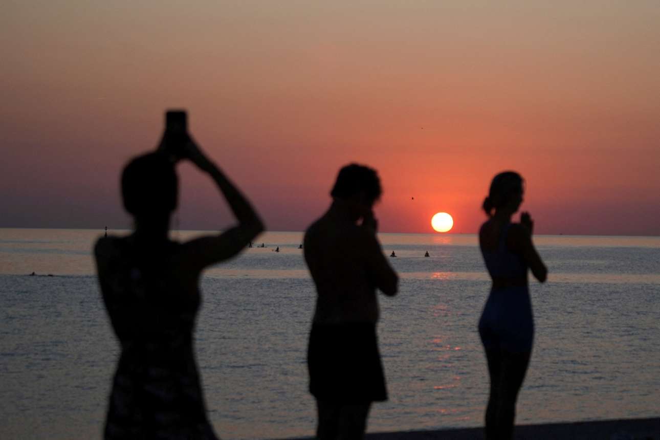 Θολό το ηλιοβασίλεμα στο λιμάνι της Νέας Υόρκης εξαιτίας του καπνού των πυρκαγιών που κατέβασε ο βοριάς από τον Καναδά