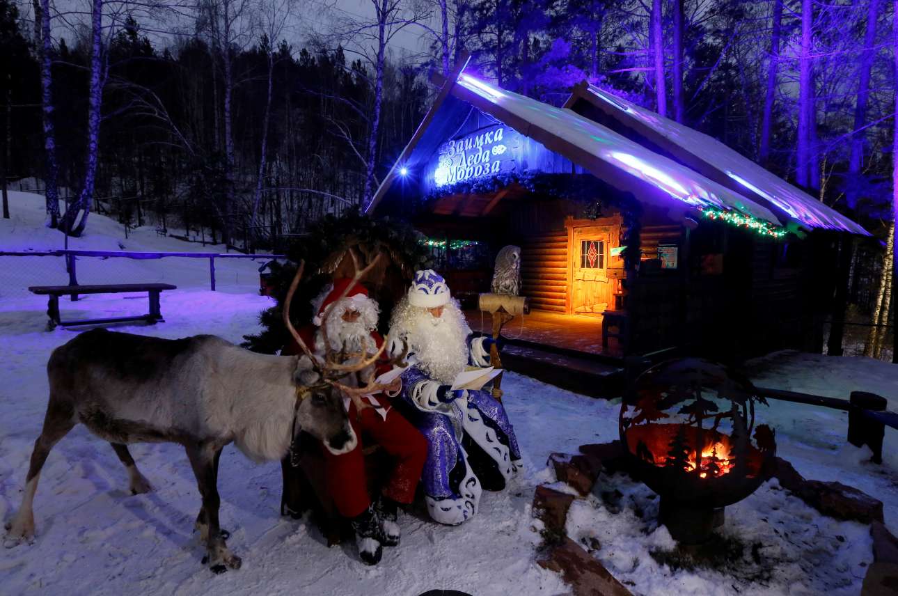 Τετάρτη, 6 Δεκεμβρίου, Ρωσία. Τα Χριστούγεννα είναι εδώ. Δύο άνδρες μεταμφιεμένοι ως Αγιος Βασίλης και Father Frost (ο αντίστοιχος ρώσος Αγιος Βασίλης) συμμετέχουν σε χριστουγεννιάτικη αναπαράσταση για τους επισκέπτες πάρκου στα περίχωρα του Κρασνογιάρσκ