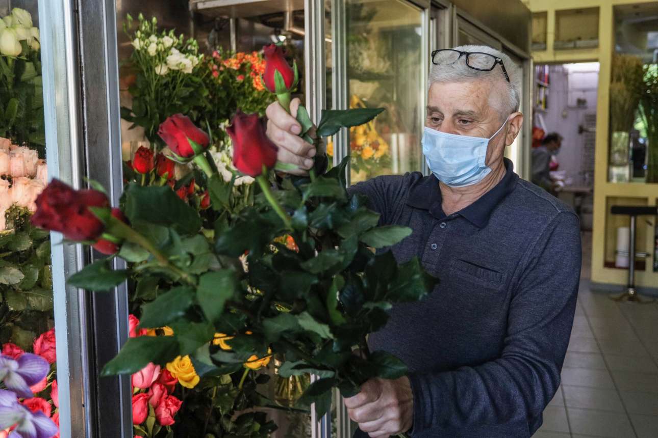 Αυτά τα κόκκινα τριαντάφυλλα θα τα μυρίσει ο πελάτης αφού προηγουμένως τα αγοράσει. Ε, φρέσκα θα είναι, καθώς το πατρινό ανθοπωλείο ήταν επί 42 ημέρες κλειστό, άχρωμο και άοσμο