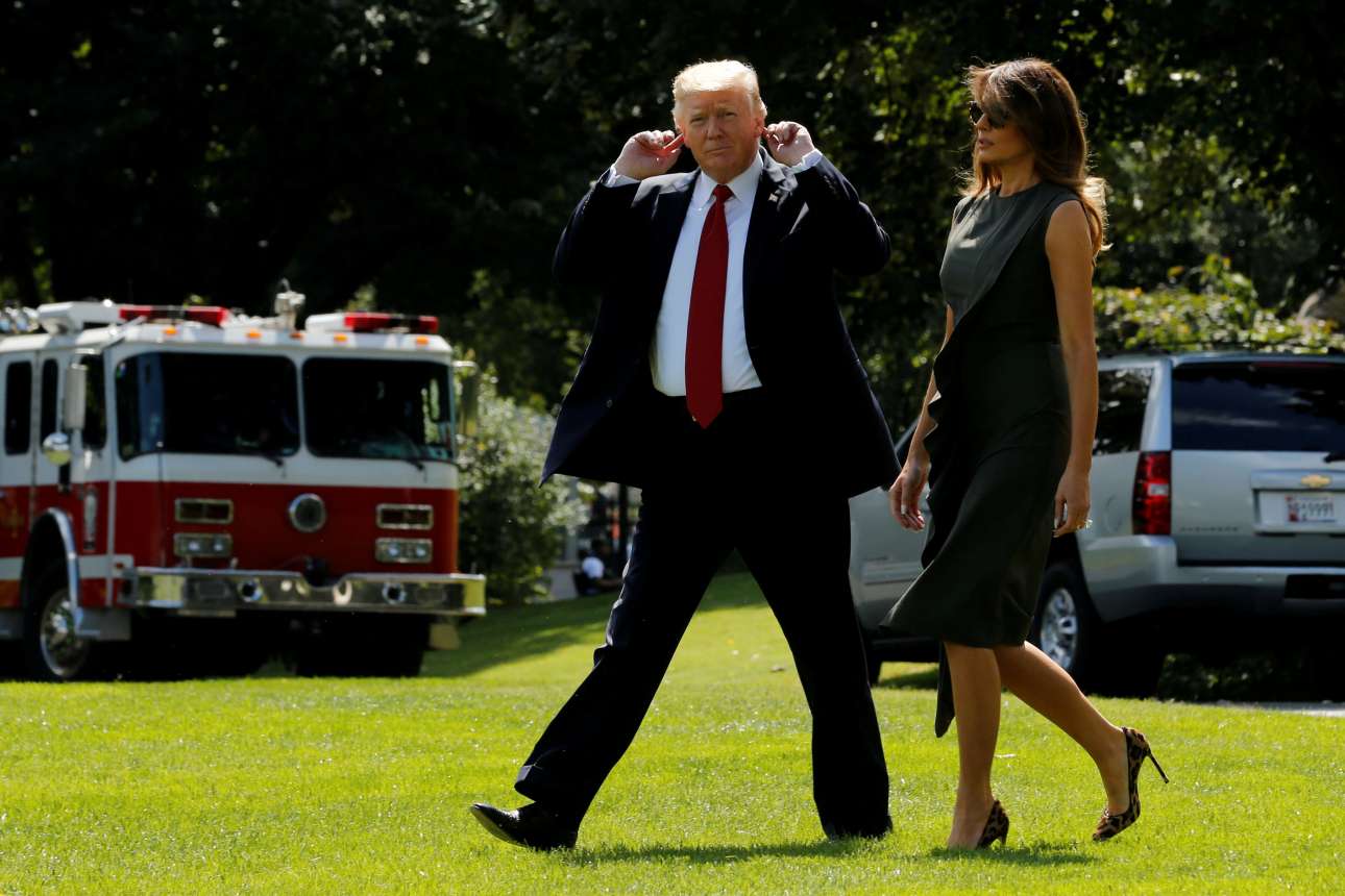 Παρασκευή, 8 Σεπτεμβρίου, Ουάσιγκτον. Ο Ντόναλντ Τραμπ κάνει ότι δεν ακούει τους δημοσιογράφους, καθώς αναχωρεί με τη σύζυγό του Μελάνια για Σαββατοκύριακο στο Καμπ Ντέιβιντ