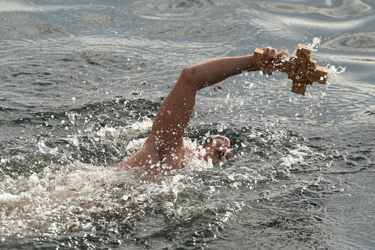 Αισιόδοξο καρέ για το νέο έτος οι θαρραλέες απλωτές στον Θερμαϊκό με τον Σταυρό των Θεοφανίων στο χέρι