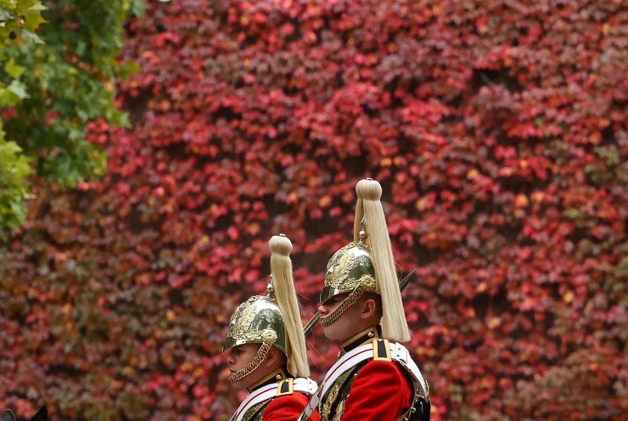 Φυλλωσιές φθινοπωρινού Λονδίνου, απαρατήρητες από τους προσηλωμένους στο καθήκον ιππείς της Βασιλικής Φρουράς