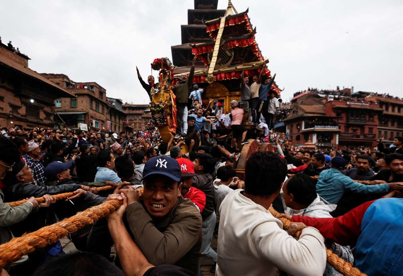 Πολύ βαρύ το θρησκευτικό χαμαλίκι των Νεπαλέζων, αφού το άρμα κάποιου από τους «θεούς» τους ήταν ασήκωτο