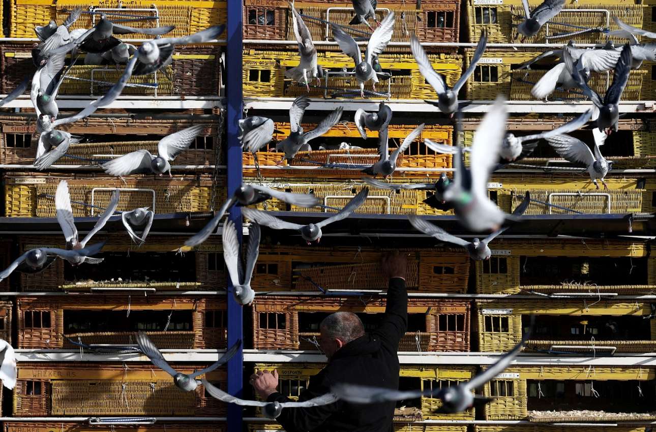 Να και η στιγμή της απελευθέρωσης περιστεριών από τα κλουβιά τους, με σκοπό τη συμμετοχή τους σε βρετανικό αγώνα ταχύτητας