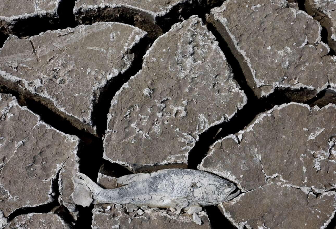 Νεκρά φύση λένε οι εικαστικοί, μα δεν εννοούν τον θάνατο της τεχνητής λίμνης Μιντ των ΗΠΑ: τμήματά της ξεράθηκαν, έτσι ο βυθός τους μετατράπηκε σε αυτό το σβολιασμένο χώμα όπου κείται ψόφιο το ψάρι – αν η λίμνη ήταν χωράφι, θα χρειαζόταν γερό σβάρνισμα