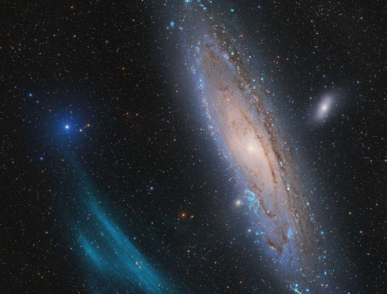 Η φωτογραφία ενός τεράστιου τόξου πλάσματος (ιονισμένου αερίου) κοντά στον Γαλαξία της Ανδρομέδας κέρδισε το πρώτο βραβείο του φετινού διαγωνισμού. Το γιγάντιο νέφος, που ανακαλύφθηκε πρόσφατα και αποτελεί αντικείμενο επιστημονικής μελέτης, είναι πιθανώς η μεγαλύτερη τέτοιου είδους κοσμική δομή στη γαλαξιακή μας γειτονιά. Ο δικαστής και αστροφωτογράφος Λάζολ Φράντσικς είπε ότι η εικόνα είναι εντυπωσιακή όσο και πολύτιμη. «Οχι μόνο παρουσιάζει την Ανδρομέδα με έναν νέο τρόπο, αλλά ανεβάζει την ποιότητα της αστροφωτογραφίας σε υψηλότερο επίπεδο»