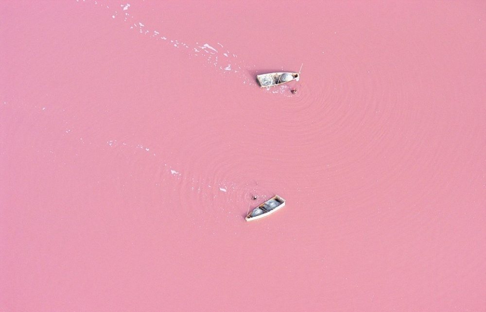 Τα ροζ νερά της λίμνης Ρέτμπα στη Σενεγάλη. Αγαπημένος τουριστικός προοορισμός λόγω του ασυνήθιστου χρώματος των νερών της, το οποίο προκαλείται από βακτήρια που αναπτύσσονται εκεί και από την υψηλή περιεκτικότητα της λίμνης σε αλάτι