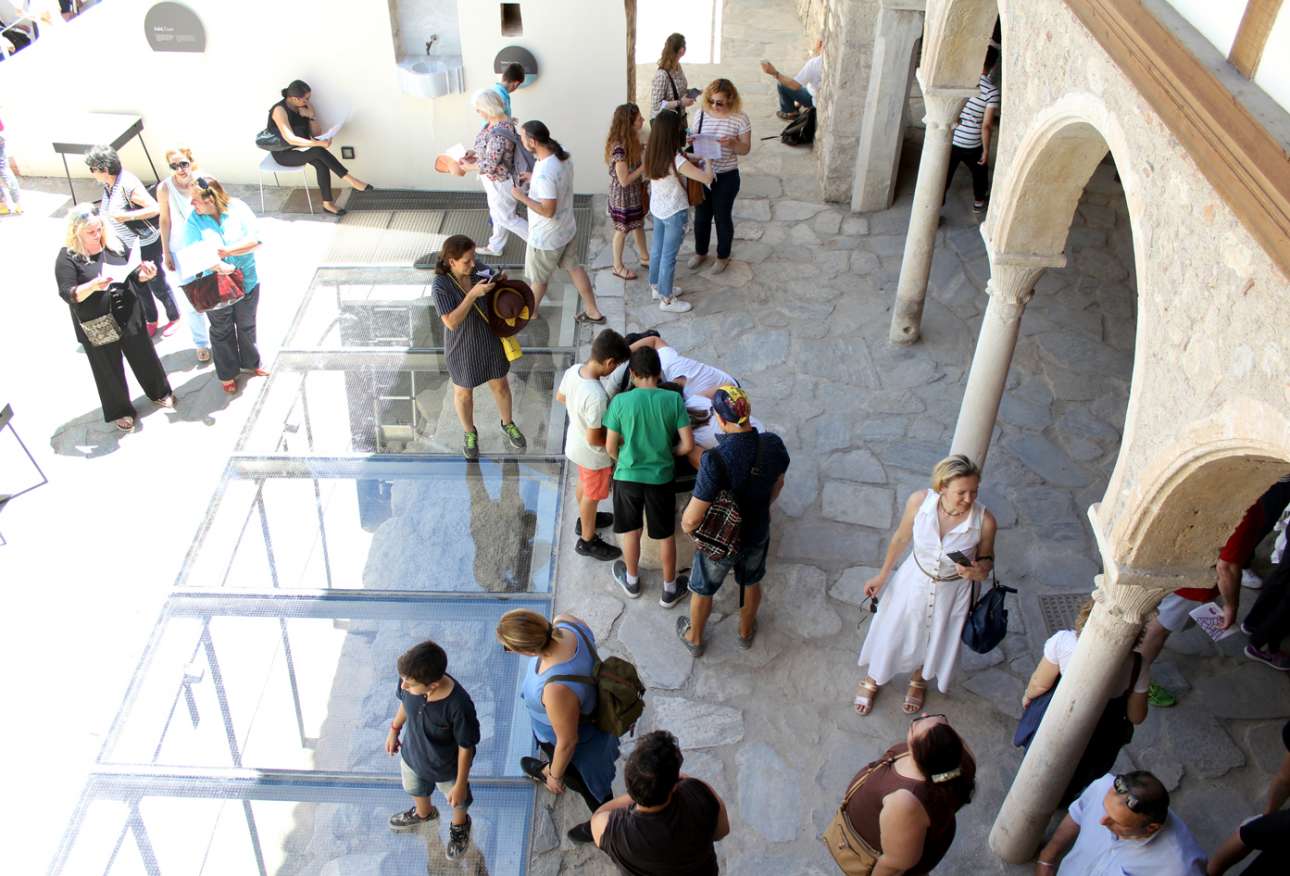 Επισκέπτες φωτογραφίζονται στην πίσω αυλή του παλαιότερου σπιτιού της Αθήνας, στο Αρχοντικό των Μπενιζέλων (Αδριανού 96)