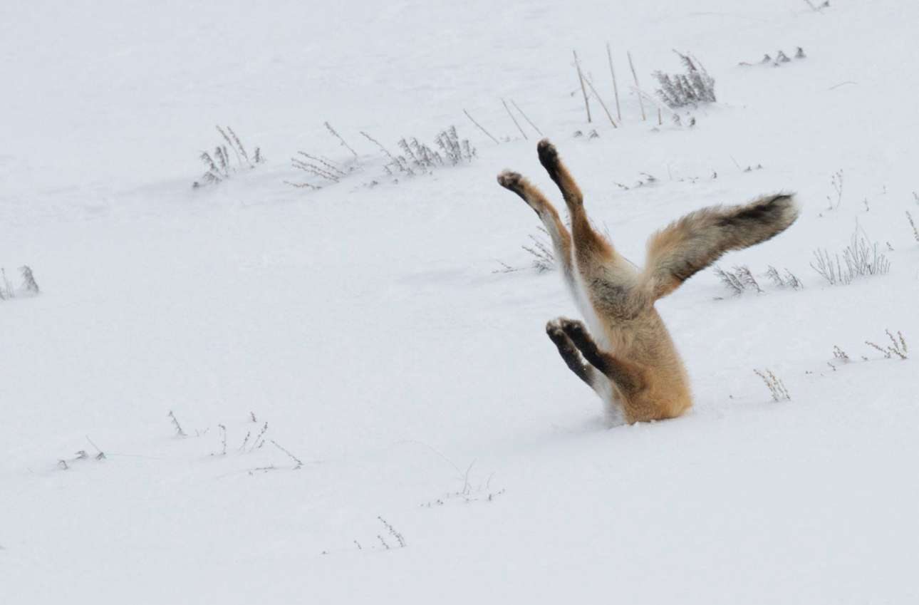 Παγιδευμένη μέσα στο χιόνι, μια αλεπού κυνηγάει το θήραμα της χωρίς επιτυχία