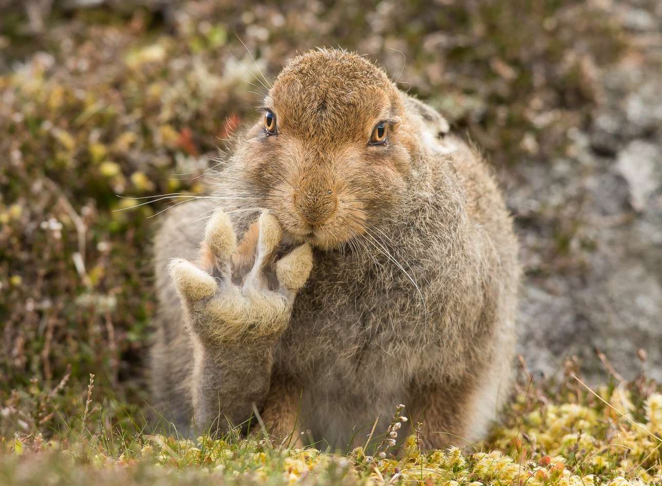 Ο φωτογράφος πέρασε πάνω από πέντε ώρες με τον εικονιζόμενο λαγό σε ένα βουνό της Σκωτίας, πριν καταφέρει να το απαθανατίσει να «χαιρετάει» με την πατούσα του
