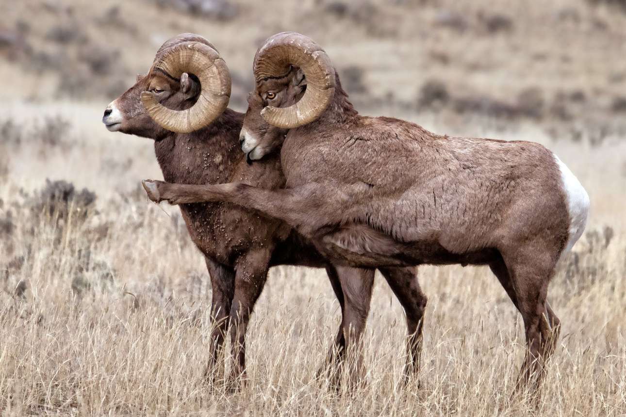 Ενα κριάρι δείχνει το δρόμο στο άλλο που στραβοκοιτάει στη Μοντάνα των Η.Π.Α