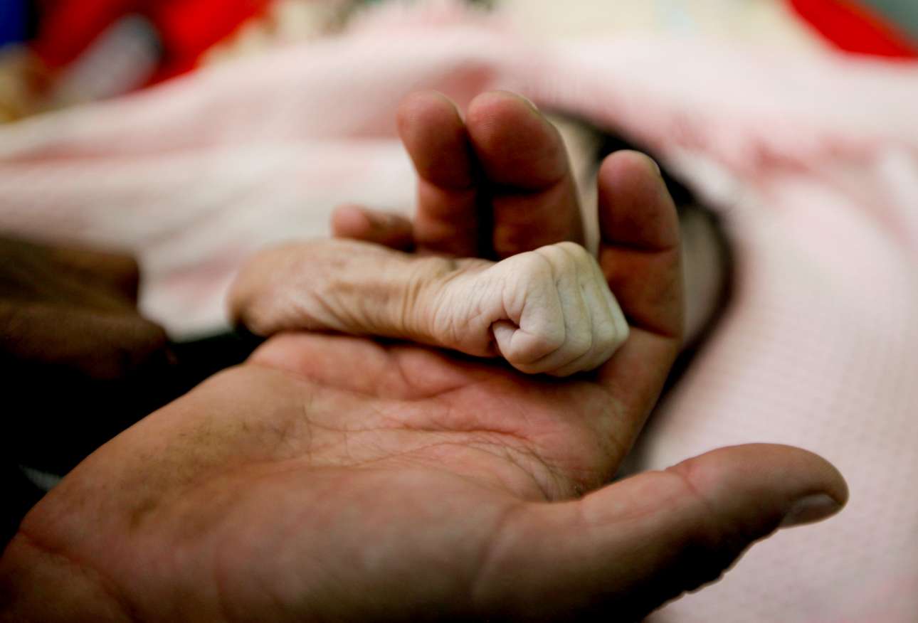 15 Νοεμβρίου. Ο Σαλέχ Χασάν αλ Φακέχ κρατάει στα χέρια του την παλάμη της τεσσάρων μηνών κόρης του Χατζάρ, η οποία ξεψύχησε σε νοσοκομείο της Υεμένης από υποσιτισμό