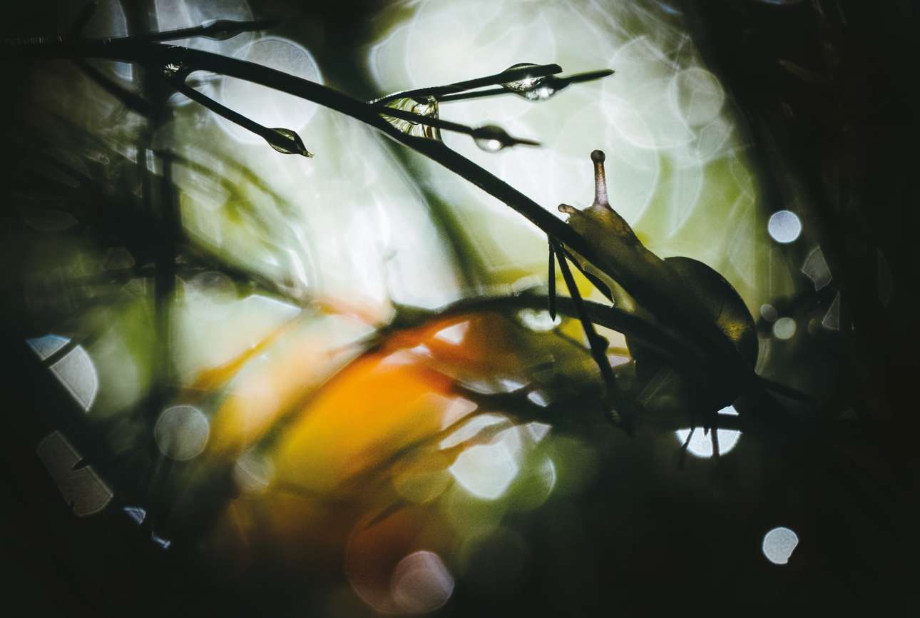 «Μικρός Κόσμος». «Το φυτό σπαράγγι στον κήπο μου προσφέρει καταφύγιο στην άγρια Φύση. Συνήθως ψάχνω για αράχνες μέσα σε αυτό για να φωτογραφίσω, αλλά εκείνο το απόγευμα μετά από έντονη βροχή, είχε καταληφθεί από σαλιγκάρια. Το φως πίσω προέρχεται από έναν φωτισμένο καρπό του φυτού. Πάντα προσπαθώ να επισκέφτομαι το φυτό μετά από βροχή, καθώς οι φωτισμένες σταγόνες ζωντανεύουν την εικόνα» γράφει ο βρετανός φωτογράφος από το Εσεξ