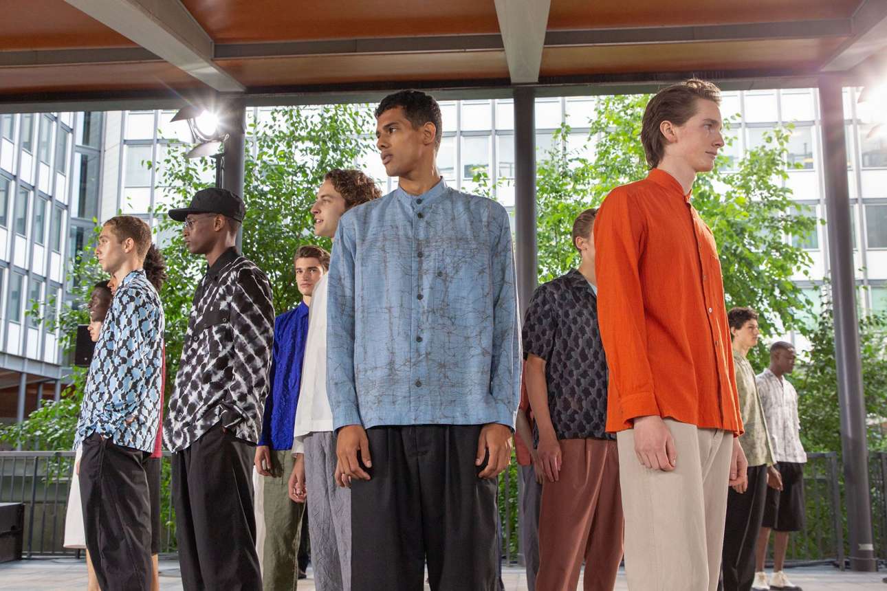 Issey Miyake Men. Διερευνώντας θολά όρια ανάμεσα στην εργασία και στη διασκέδαση τώρα που μπορεί κανείς να δουλεύει με το λάπτοπ σε ένα καφενείο ή σε ένα πάρκο, ο εμπνευσμένος Ισέι Μιγιάκε προσάρμοσε ανάλογα το κόνσεπτ του σύγχρονου ενδύματος εργασίας φέρνοντας με το ντεφιλέ του φρέσκο αεράκι στην παρισινή ανδρική μόδα