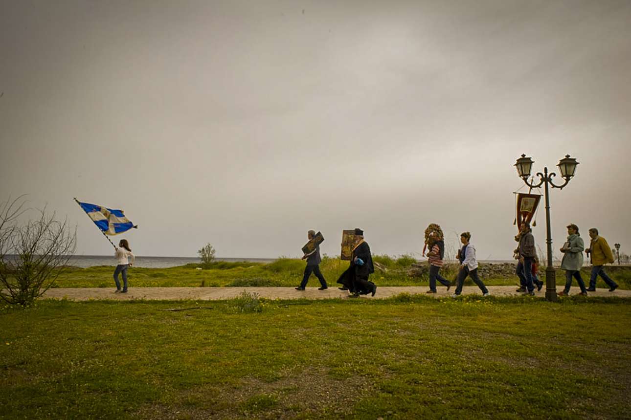 Σαν καρέ από ταινία του Αγγελόπουλου, η περιφορά της εικόνας της Ανάστασης, Δευτέρα του Πάσχα στη Χίο