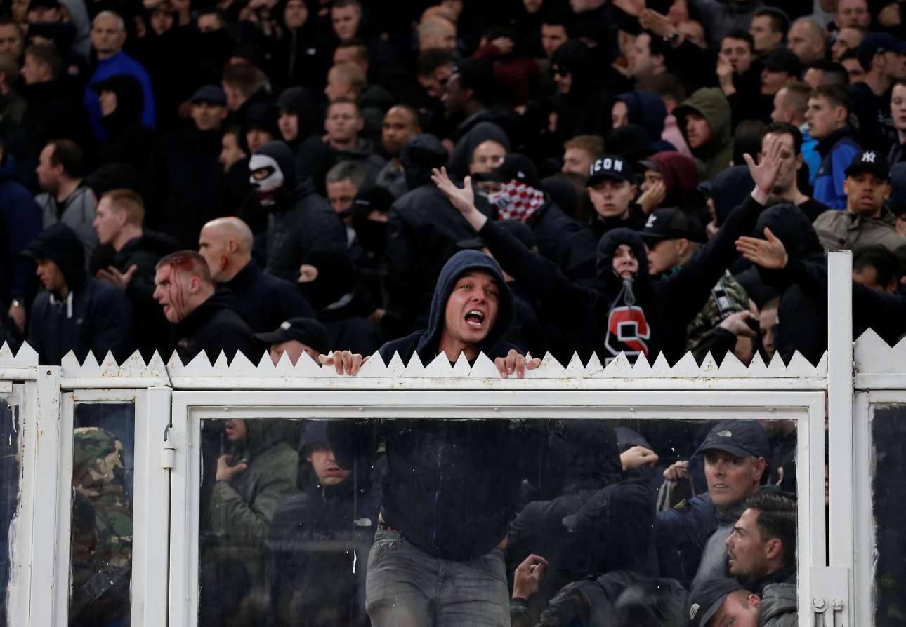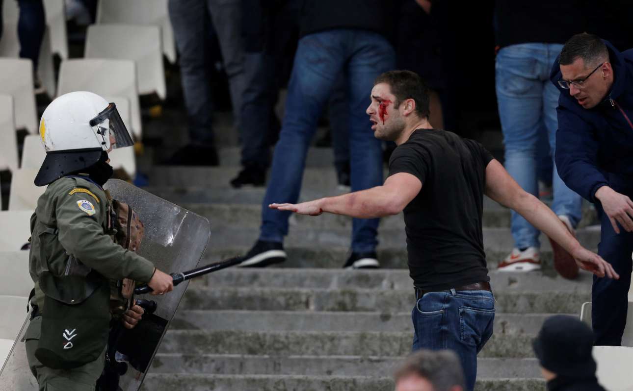 Η αλήθεια είναι ότι είχαμε συνηθίσει να βλέπουμε τέτοιες σκηνές σε αγώνες του ελληνικού πρωταθλήματος. Ομως, αυτήν την φορά το ΟΑΚΑ έγινε πεδίο μάχης σε έναν αγώνα της μεγαλύτερης διασυλλογικής διοργάνωσης, του Champions League. Η εκρηκτική ατμόσφαιρα ανάμεσα σε χούλιγκαν του Αγιαξ και της ΑΕΚ μεταφέρθηκε και στις κερκίδες όπου πριν από την έναρξη του αγώνα είδαμε σκηνές… απείρου κάλλους με φωτοβολίδες, φωτιές, ξύλο και αρκετούς τραυματίες