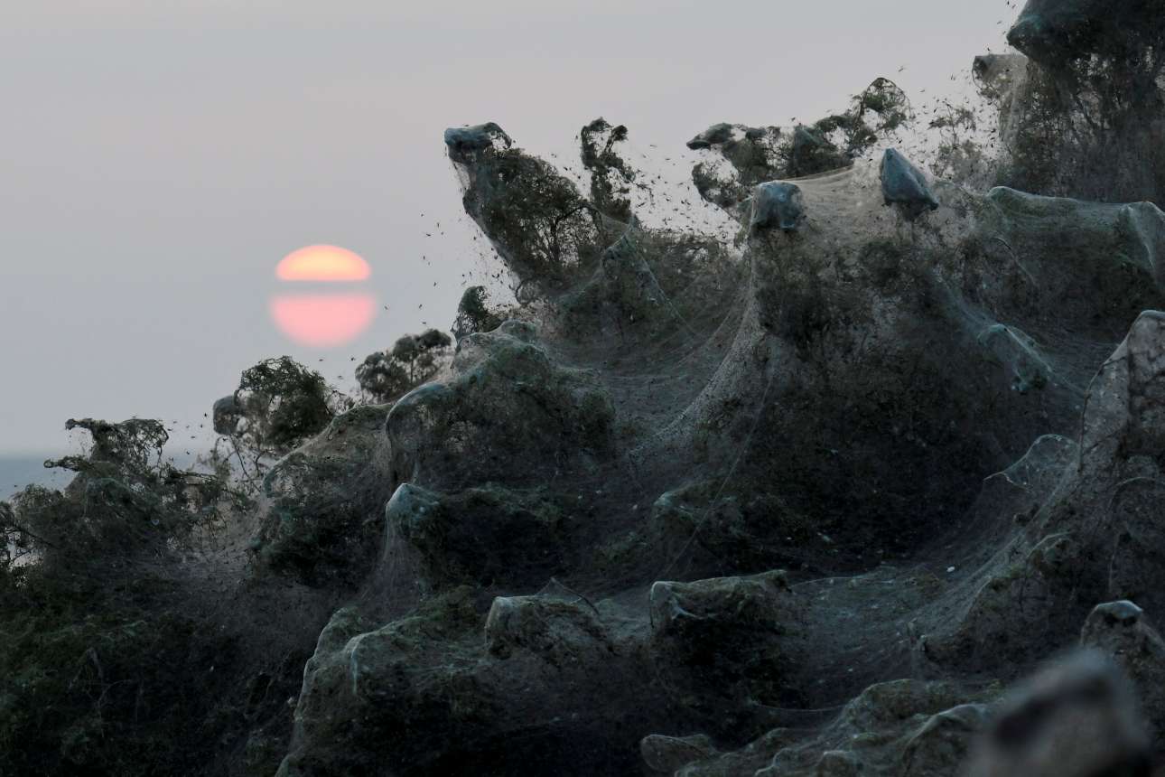 Παρασκευή, 19 Οκτωβρίου, Ελλάδα. Εντυπωσιακό θέαμα ενός τεράστιου ιστού χιλιάδων αραχνών, που έχει σκεπάσει από άκρη σε άκρη την λίμνη Βιστωνίδα στην περιοχή της Ξάνθης. Ο ιστός απλώνεται μπροστά από το Μετόχι της Μονής Βατοπεδίου τον Αϊ Νικόλα στο Πόρτο Λάγος