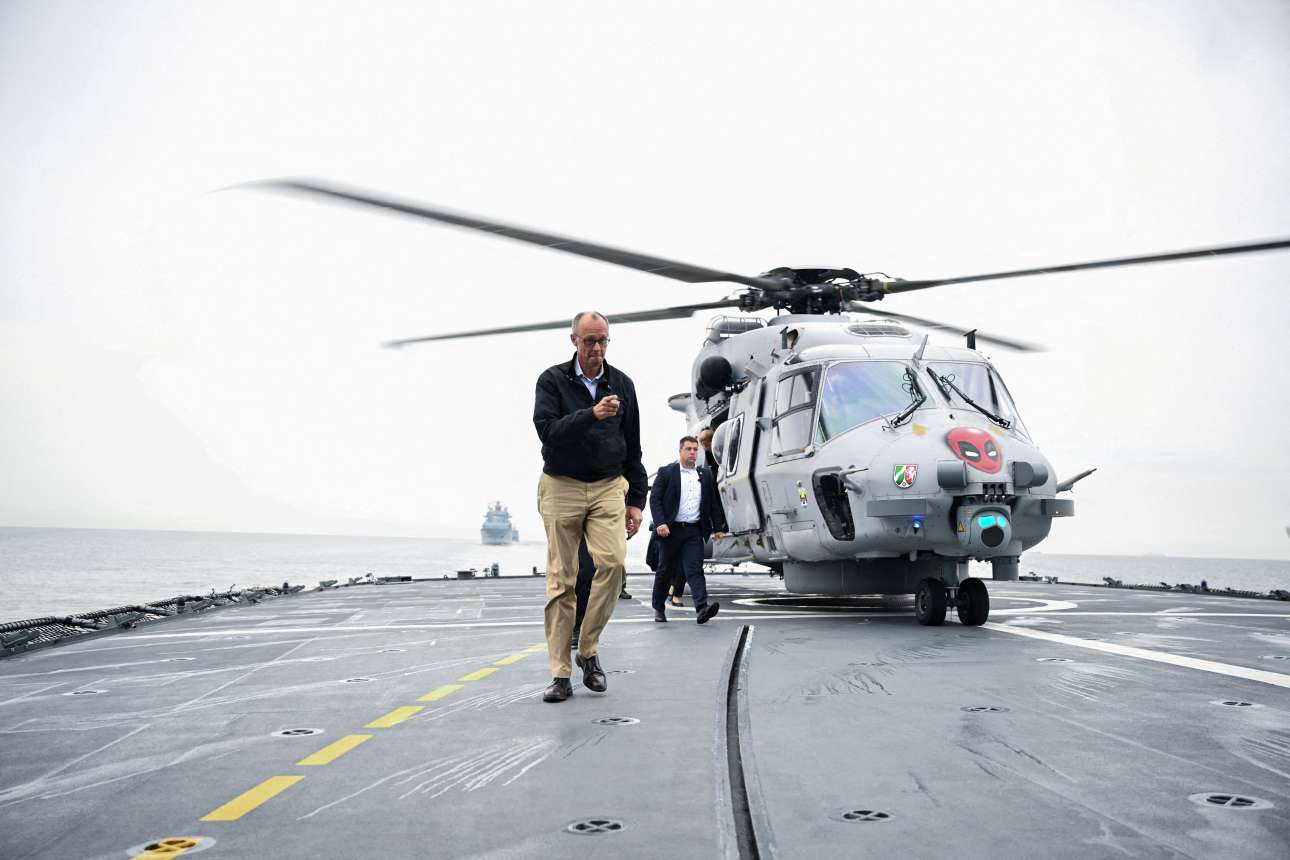 Ο καγκελάριος της Γερμανίας Φρίντριχ Μερτς έχει μόλις αποβιβαστεί από στρατιωτικό ελικόπτερο σε γερμανικό πολεμικό στη Βαλτική Θάλασσα - μια σημειολογική, αλλά όχι μόνο, κίνηση, καθώς απηχεί τη βούληση της γερμανικής κυβέρνησης για άμεση ανασύσταση της στρατιωτικής μηχανής