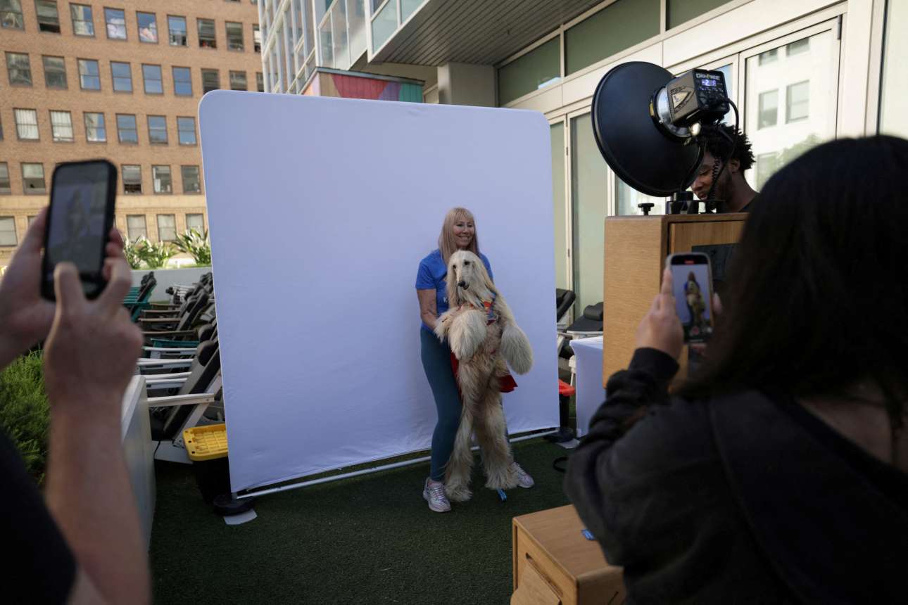 Η σινεφίλ Τέρ και ο σκύλος της Σάι ποζάρουν για μια αναμνηστική φωτογραφία πριν από ειδική προβολή του νέου «Superman» στο Λος Αντζελες