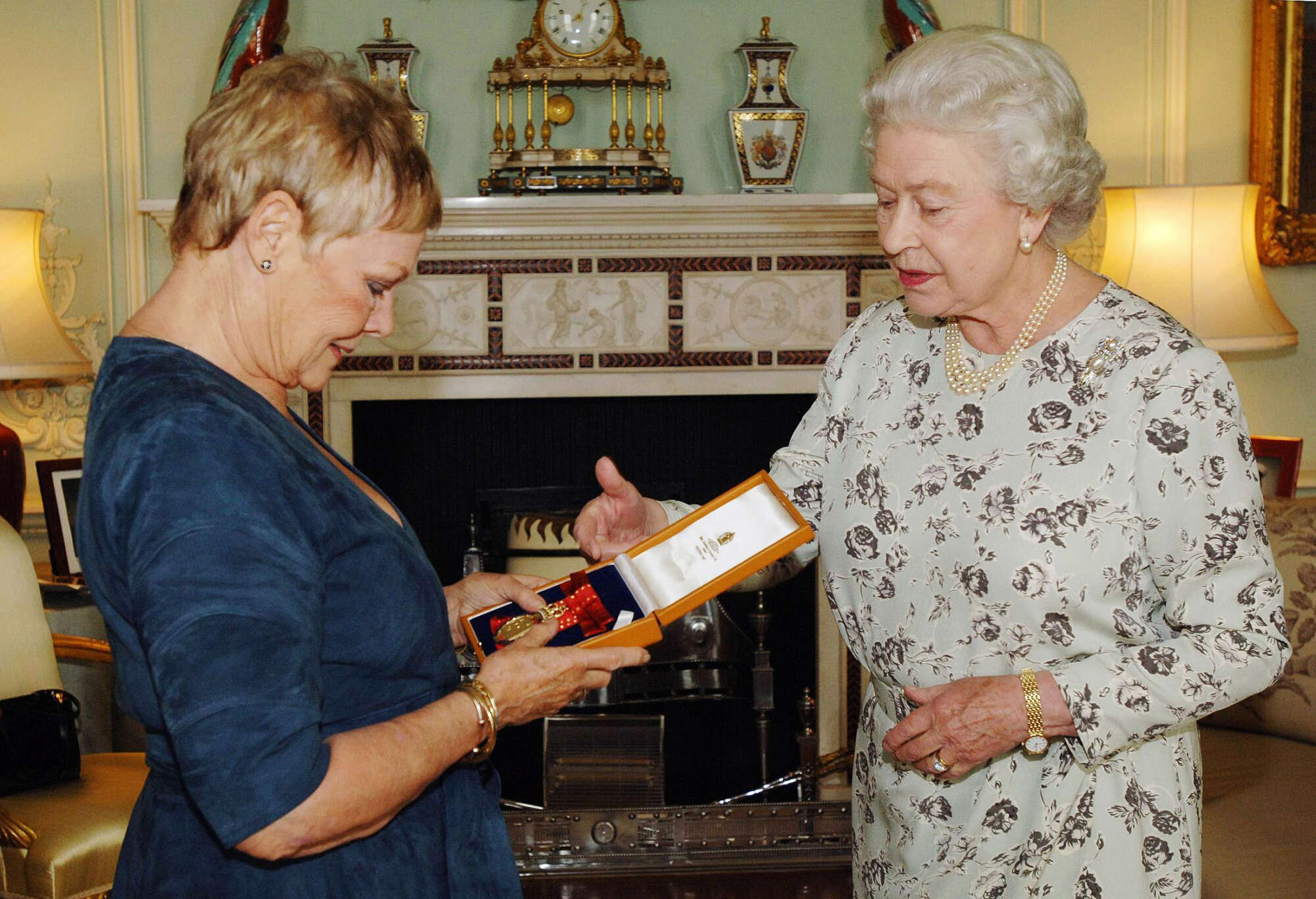 Η βασίλισσα δίνει στην βραβευμένη με Οσκαρ ηθοποιό Τζούντι Ντεντς ένα βασιλικό παράσημο, στο Παλάτι του Μπάκιγχαμ