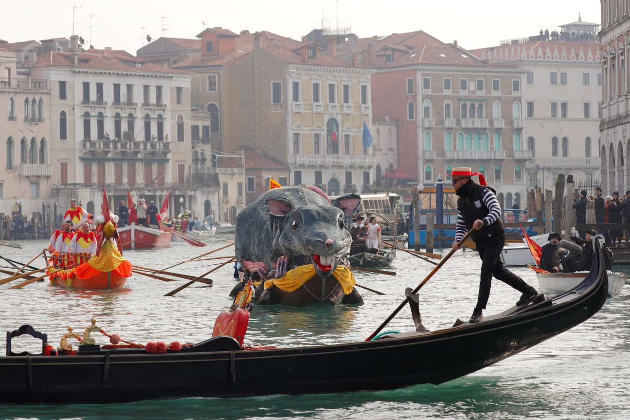 Τα κανάλια της πόλης γέμισαν γόνδολες που είχαν μετατραπεί σε πλωτά άρματα και σήμαναν την έναρξη του φετινού καρναβαλιού