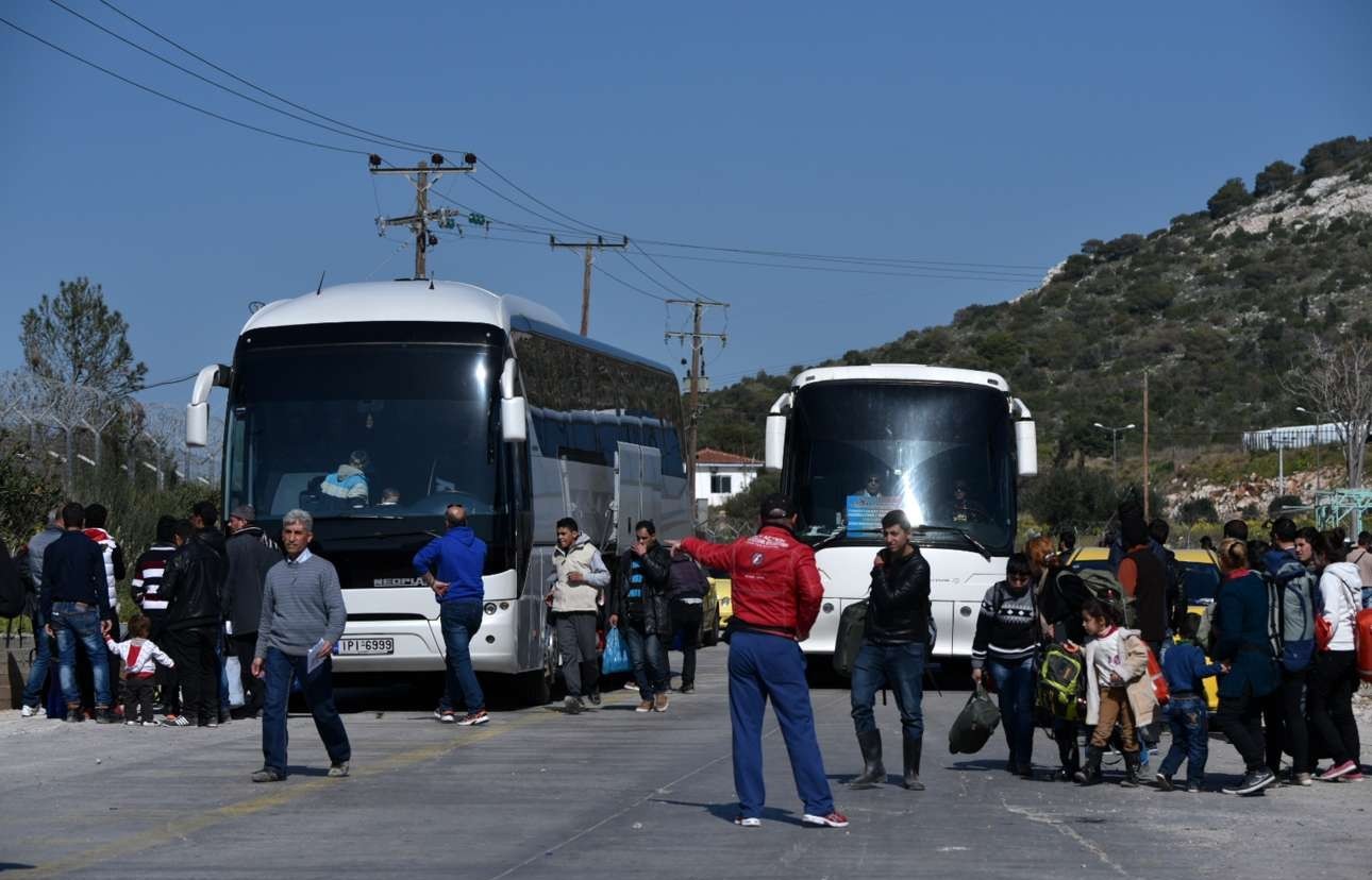 Οικογένειες προσφύγων μεταβαίνουν στο hotspot του Σχιστού το πρωί της 23ης Φεβρουαρίου