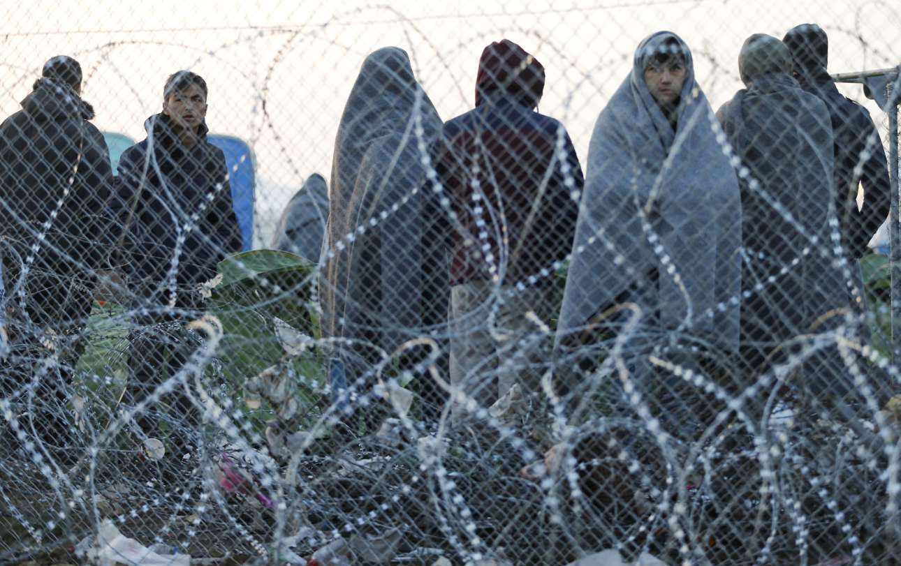 Οικογένειες μεταναστών πίσω από τη ζώνη που έχουν δημιουργήσει οι ειδικές δυνάμεις της ΕΛ.ΑΣ. στην Ειδομένη