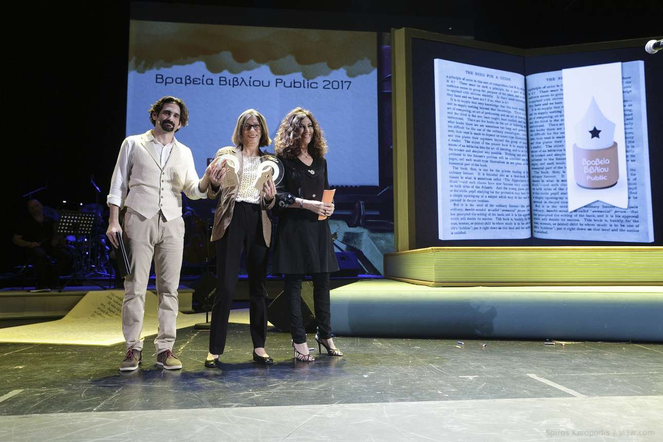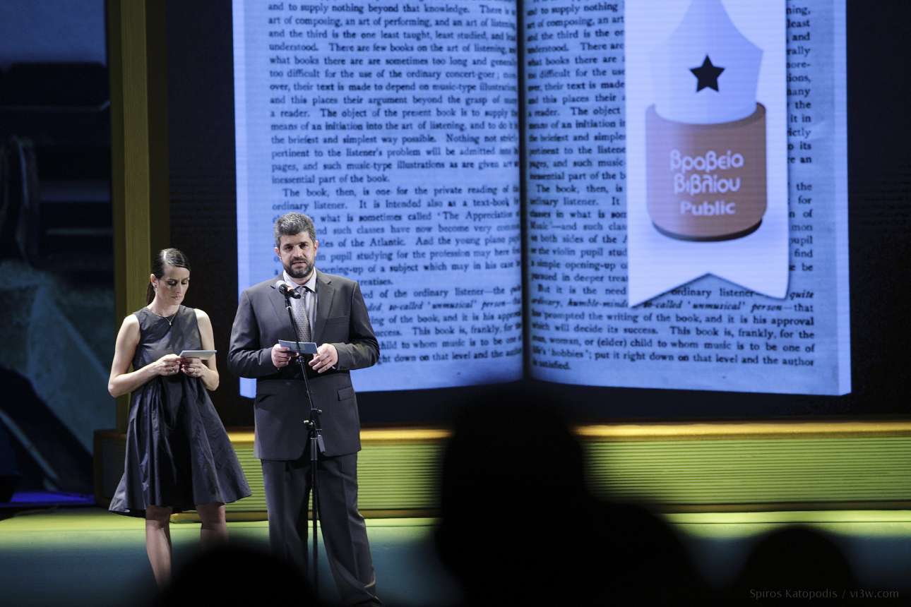 Δεκάδες χιλιάδες αναγνώστες συμμετείχαν και φέτος στην ψηφοφορία των Public για την ανάδειξη των αγαπημένων βιβλίων του κοινού. Και έπρεπε να διαλέξουν ανάμεσα σε 2.200 τίτλους, 1.300 συγγραφείς, 160 εκδότες και τιμώμενη χώρα την Ιταλία. Κάποιοι από αυτούς ήταν παρόντες και στην τελετή απονομής των Βραβείων Βιβλίου Public που εκτυλίχθηκε σαν μαγική παράσταση στην σκηνή του θεάτρου Παλλάς στην Αθήνα, την Τρίτη, 23 Μαϊου. Δείτε στιγμιότυπα από την κατάμεστη αίθουσα και τις βραβεύσεις