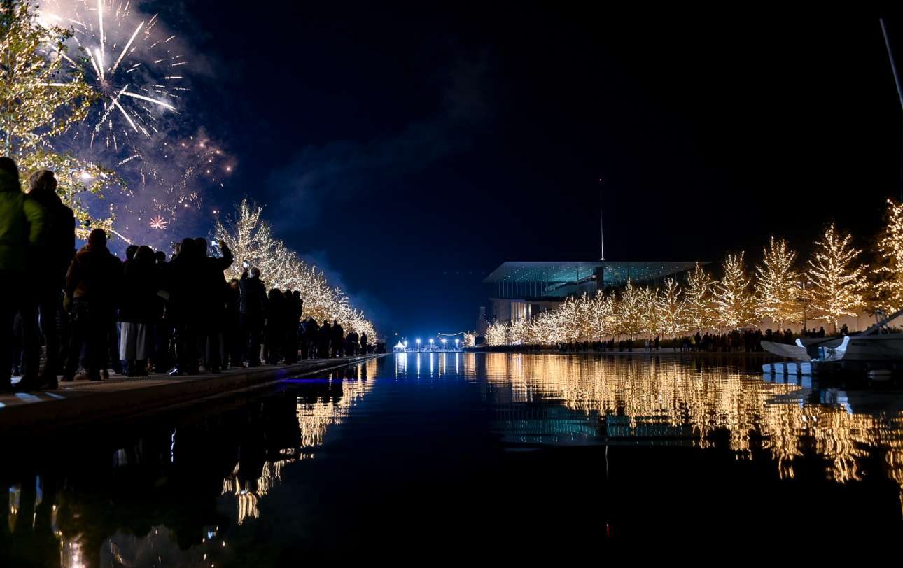 Πλήθος κόσμου βρέθηκε στο Κέντρο Πολιτισμού «Ιδρυμα Σταύρος Νιάρχος», στο Φάληρο, για να υποδεχτεί, με μουσική και πυροτεχνήματα το 2018