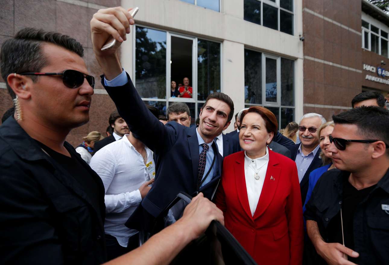 Η υποψήφια για την προεδρία Μεράλ Ακσενέρ ποζάρει για μια σέλφι με υποστηρικτή της στην Κωνσταντινούπολη