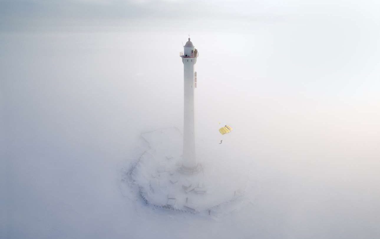 Φιναλίστ, κατηγορία «Αριστούργημα». Εντυπωσιακή πτώση με αλεξίπτωτο μέσα στην ομίχλη, από τον φάρο 40 μέτρων του Κόλπου της Φινλανδίας