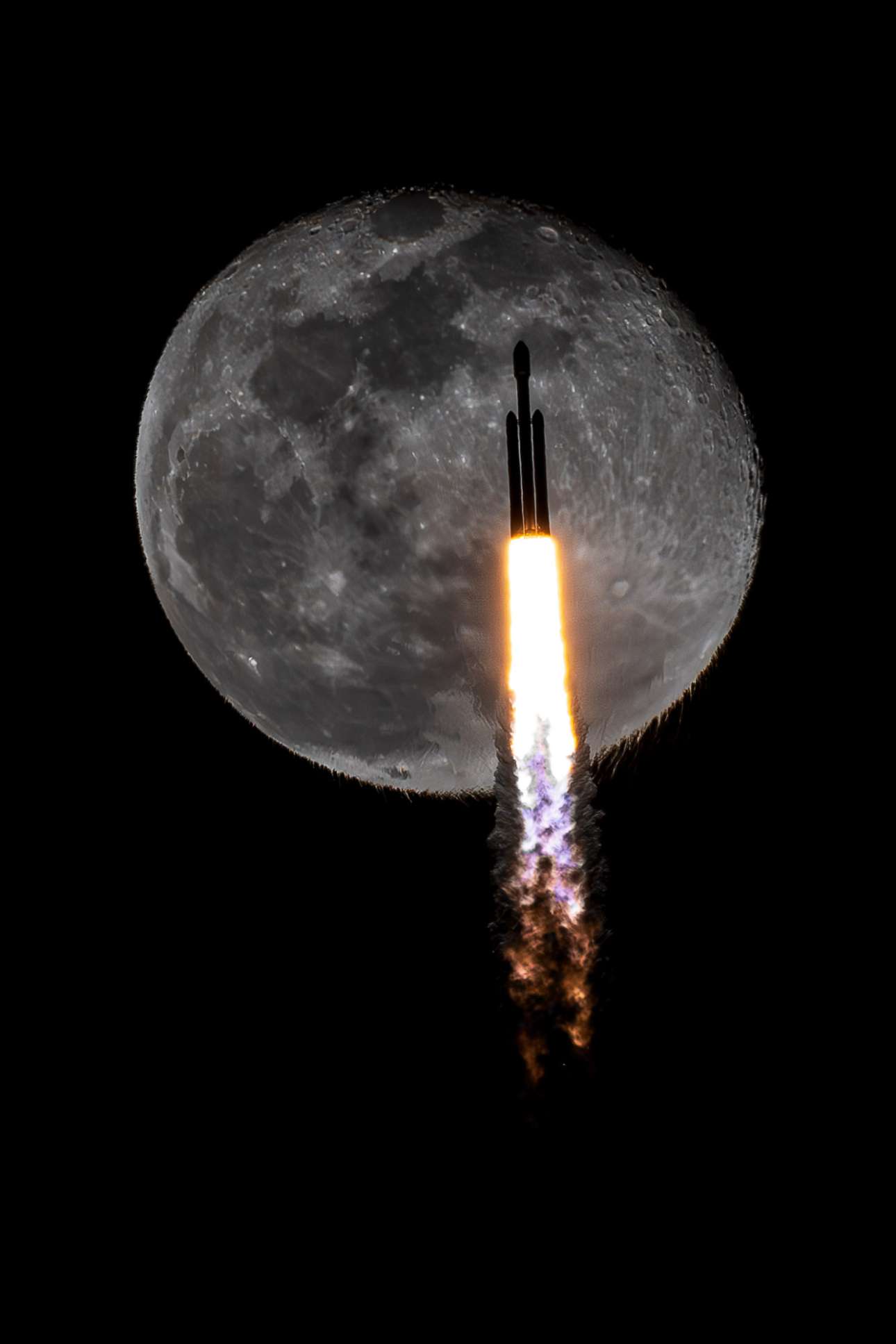 Τα ωστικά κύματα από τον πύραυλο της SpaceX, Falcon Heavy, σχηματίζουν κυματιστά εφέ που «τέμνουν» τη Σελήνη