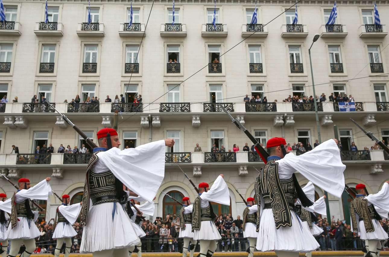 Σημαιάκια, κόσμος (αλλά και τουρίστες) στα πεζοδρόμια, πεζοπόρα τμήματα, τεθωρακισμένα, μαχητικά και ελικόπτερα: να πώς εορτάστηκε η επέτειος του 1821 σε μια Αθήνα ελαφρώς συννεφιασμένη και με τα άλλα σύννεφα, εκείνα της έντασης με την Τουρκία στον ορίζοντα